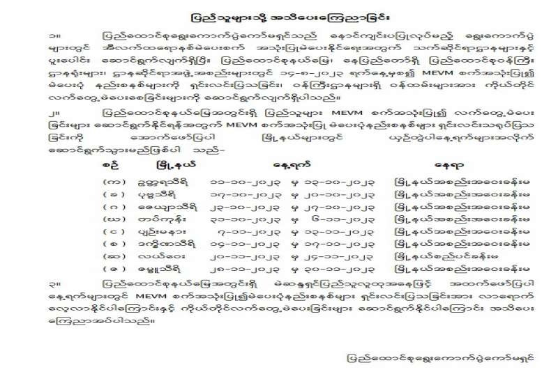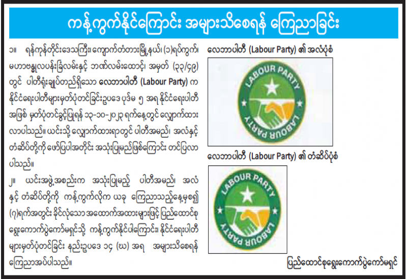 ကန့်ကွက်နိုင်ကြောင်း အများသိစေရန် ကြေညာခြင်း