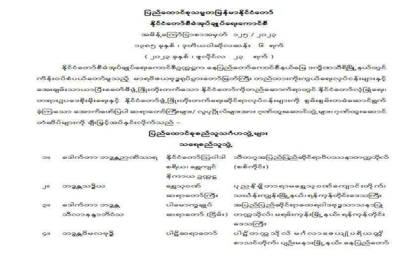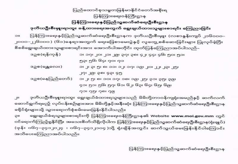 ပြန်ကြားရေးဝန်ကြီးဌာန၊ ပြန်ကြားရေးနှင့်ပြည်သူ့ဆက်ဆံရေးဦးစီးဌာန၏ ၂၀၂၃-၂၀၂၄ ဘဏ္ဍာရေးနှစ်တွင် ပြည်ထောင်စုငွေလုံးငွေရင်းအသုံးစရိတ်ဖြင့် ရုပ်ရှင်မြှင့်တင်ရေးဌာနခွဲ(ရန်ကုန်) အနုပညာရပ်ဝန်းအတွင်းရှိ ရုပ်ရှင်ပြခန်းမ စတူဒီယို(၂)၊ (၃)နှင့် ဝန်ထမ်းအိမ်ရာများ အသုံးပြုလျက် ရှိသည့် သက်တမ်းကြာမြင့်သော လျှပ်စစ်မီးလိုင်း(Overhead)ကြိုးများ လဲလှယ်ပြုပြင်ခြင်းလုပ်ငန်းများ ဆောင်ရွက်ရန်အတွက် (၂၆-၆-၂၀၂၃)ရက်နေ့တွင် ကျင်းပပြုလုပ်သော ပြန်ကြားရေးဝန်ကြီးဌာန၊ စီမံခန့်ခွဲရေးကော်မတီအစည်းအဝေးအမှတ်စဉ်(၁၃/ ၂၀၂၃)၏ သဘောတူညီချက်အရ Primate Construction and Decoration Co.,Ltd က ငွေကျပ် ၂၇,၀၀၀,၀၀၀/- ဖြင့် တင်ဒါအောင်မြင်ကြောင်း ကြေညာအပ်ပါသည်။