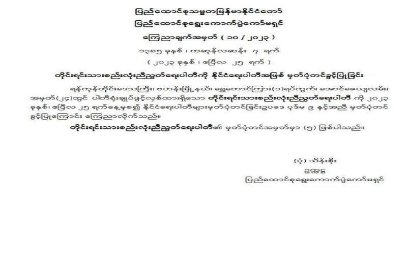 ပြည်ထောင်စုသမ္မတမြန်မာနိုင်ငံတော်၊ ပြည်ထောင်စုရွေးကောက်ပွဲကော်မရှင် ကြေညာချက်အမှတ် (၂၀/၂၀၂၃)