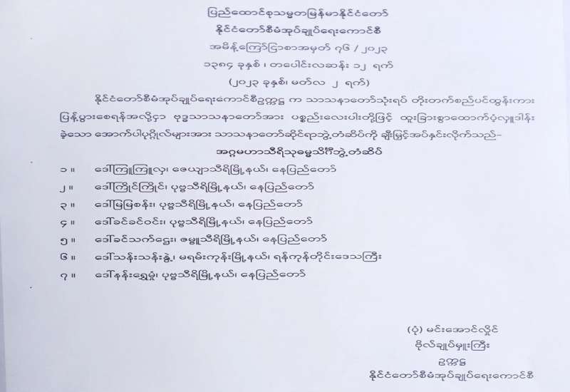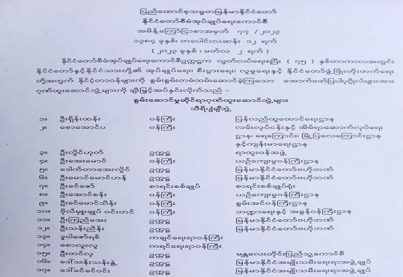 ပြည်ထောင်စုသမ္မတမြန်မာနိုင်ငံတော် နိုင်ငံတော်စီမံအုပ်ချုပ်ရေးကောင်စီ အမိန့်ကြော်ငြာစာအမှတ် ၇၇ / ၂၀၂၃ ၁၃၈၄ ခုနှစ်၊ တပေါင်းလဆန်း ၁၂ ရက် ( ၂၀၂၃ ခုနှစ် ၊ မတ်လ ၂ ရက် )