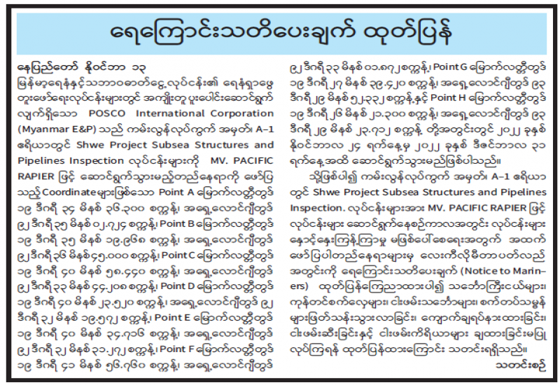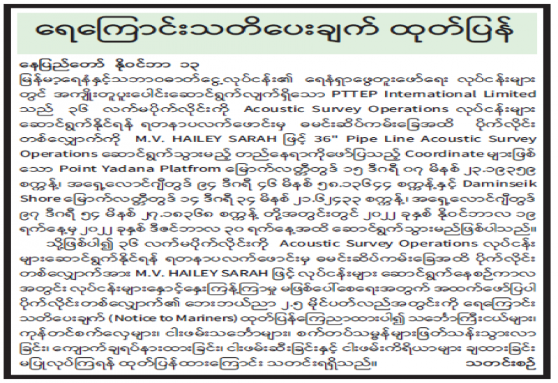 ရေကြောင်းသတိပေးချက် ထုတ်ပြန်
