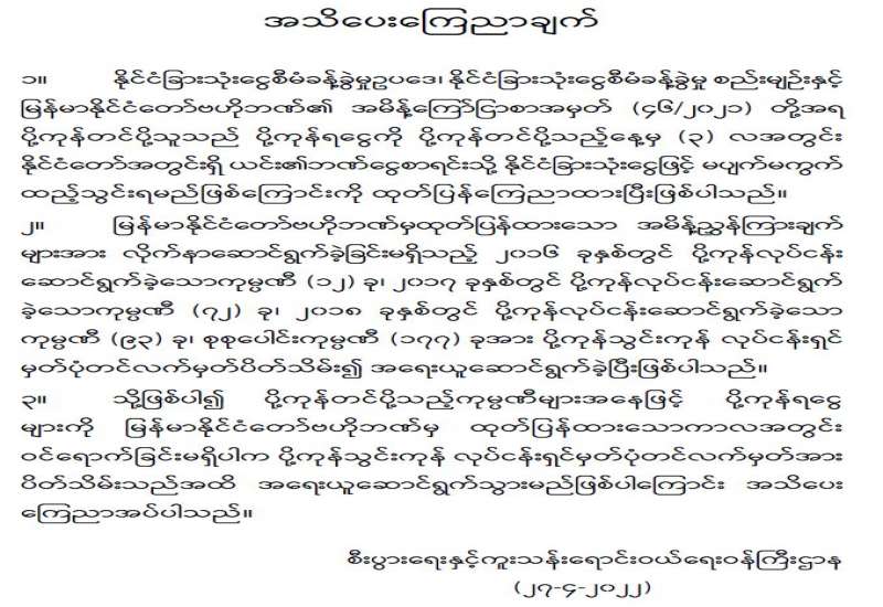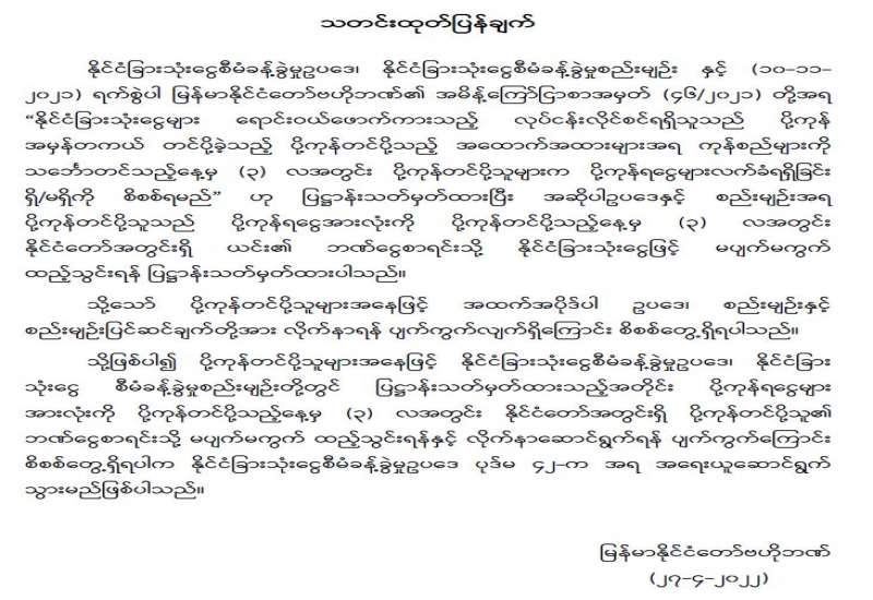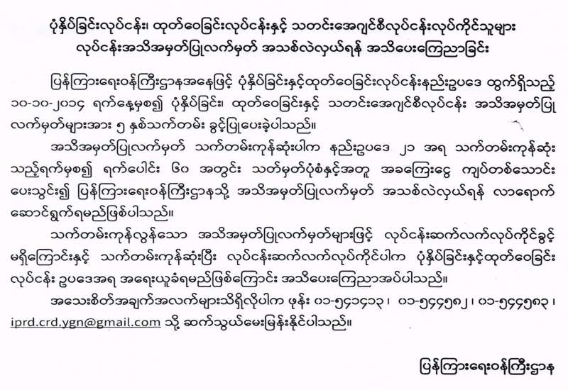 ပုံနှိပ်ခြင်းလုပ်ငန်း၊ ထုတ်ဝေခြင်းလုပ်ငန်းနှင့် သတင်းအေဂျင်စီလုပ်ငန်းလုပ်ကိုင်သူများ လုပ်ငန်း အသိအမှတ်ပြုလက်မှတ် အသစ်လဲလှယ်ရန် အသိပေးကြေညာခြင်း