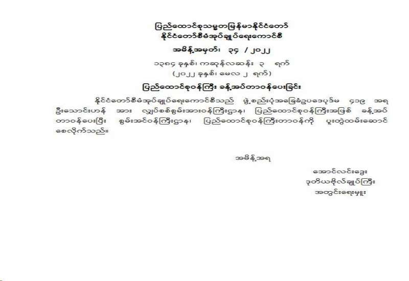 ပြည်ထောင်စုရွေးကောက်ပွဲကော်မရှင် အဖွဲ့ဝင် ခန့်အပ်တာဝန်ပေးခြင်း