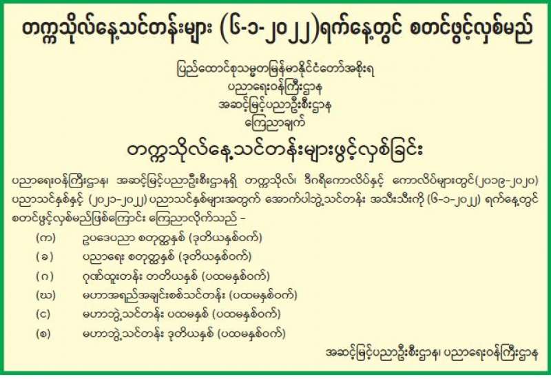 ပုံနှိပ်ခြင်းလုပ်ငန်း၊ ထုတ်ဝေခြင်းလုပ်ငန်းနှင့်၊ သတင်းအေဂျင်စီလုပ်ငန်းလုပ်ကိုင်သူများ လုပ်ငန်း အသိအမှတ်ပြုလက်မှတ် အသစ်လဲလှယ်ရန် အသိပေးကြေညာခြင်း