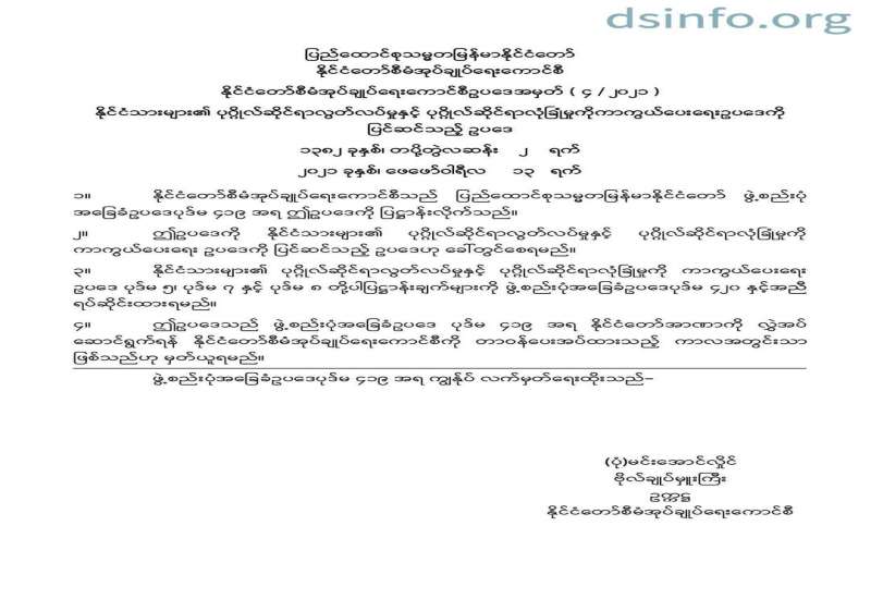 နိုင်ငံတော်စီမံအုပ်ချုပ်ရေးကောင်စီ၏ ပြည်သူသို့အသိပေးချက်