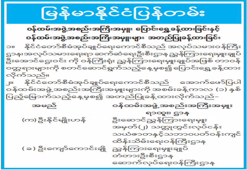 ဝန်ထမ်းအဖွဲ့အစည်းအကြီးအမှူး ပြောင်းရွှေ့ခန့်ထားခြင်းနှင့် ဝန်ထမ်းအဖွဲ့အစည်းအကြီးအမှူးများ အတည်ပြုခန့်ထားခြင်း