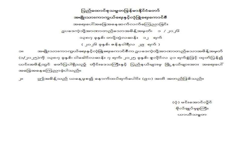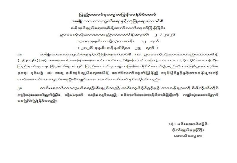 ပြည်သူလူထုသို့ အသိပေးနှိုးဆော်ချက်