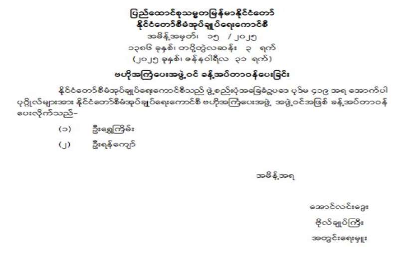 ကော်မရှင်အဖွဲ့ဝင် ခန့်အပ်တာဝန်ပေးခြင်း