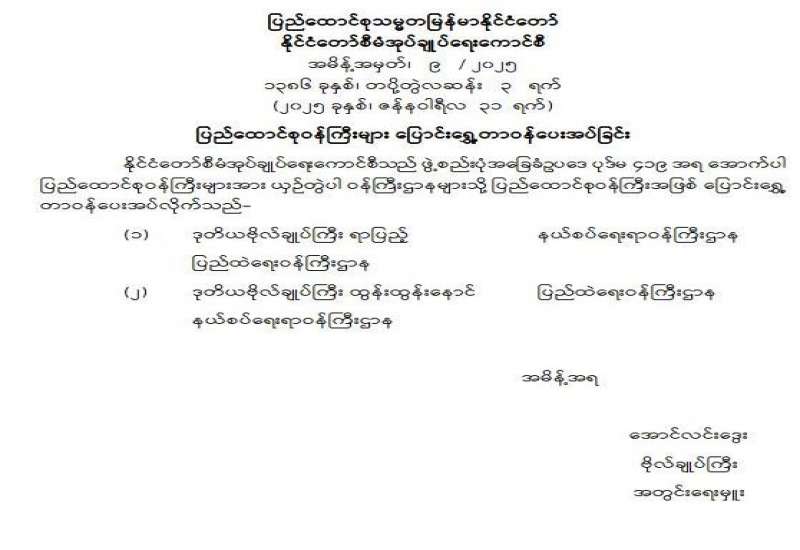 ပြည်ထောင်စုဝန်ကြီးများ ပြောင်းရွှေ့တာဝန်ပေးအပ်ခြင်း