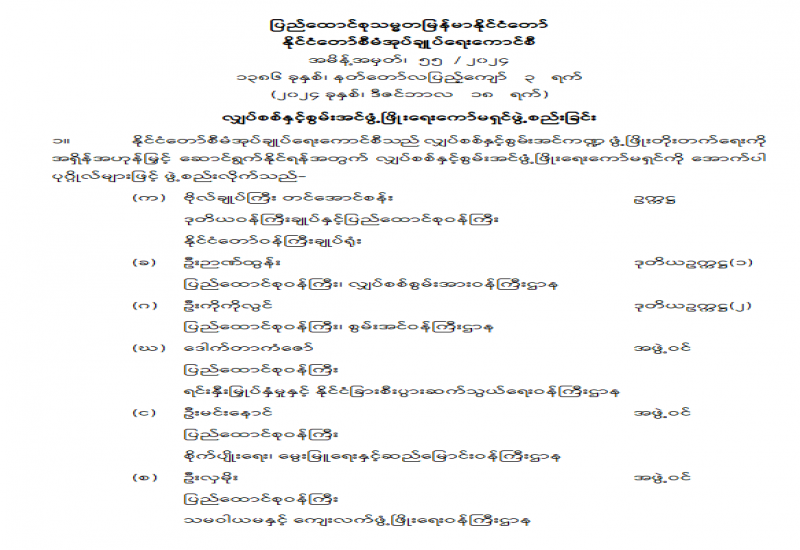 လျှပ်စစ်နှင့် စွမ်းအင်ဖွံ့ဖြိုးရေးကော်မရှင်ဖွဲ့စည်းခြင်း