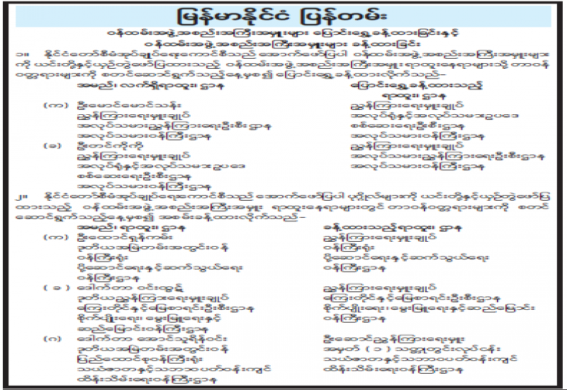 ဒုတိယဝန်ကြီးချုပ်နှင့် ပြည်ထောင်စုဝန်ကြီး ခန့်အပ်တာဝန်ပေးခြင်း