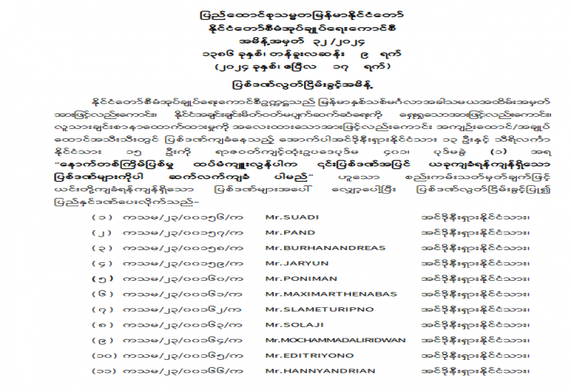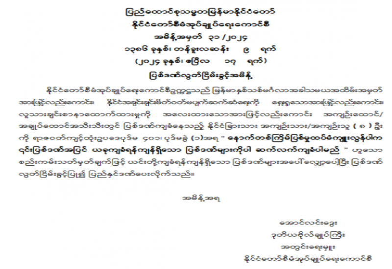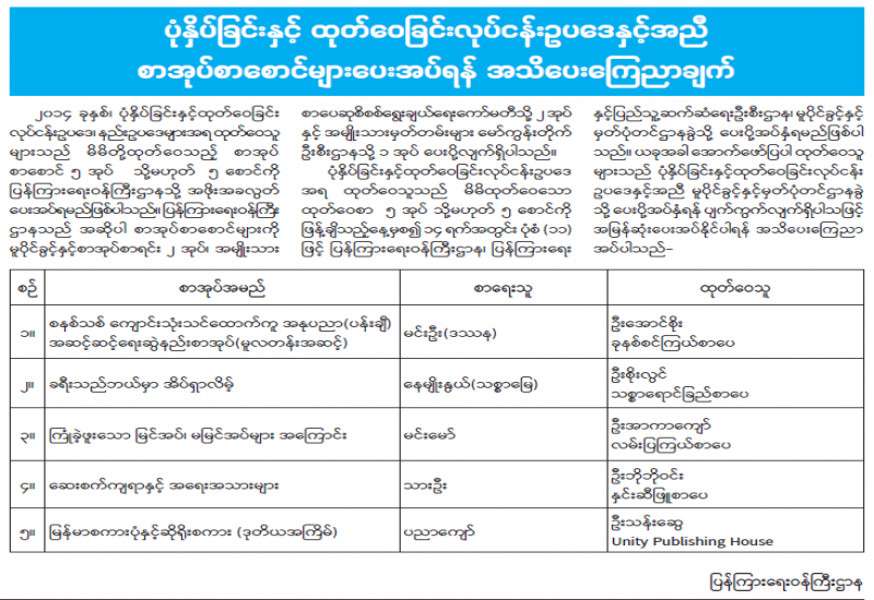 ပုံနှိပ်ခြင်းနှင့် ထုတ်ဝေခြင်းလုပ်ငန်းဥပဒေနှင့်အညီ စာအုပ်စာစောင်များပေးအပ်ရန် အသိပေးကြေညာချက်