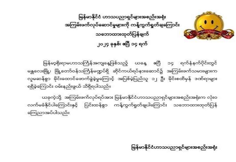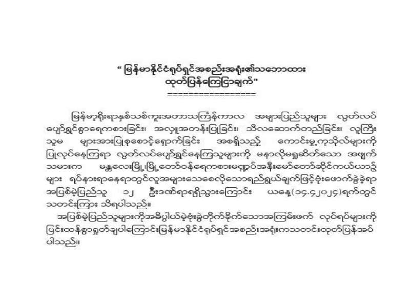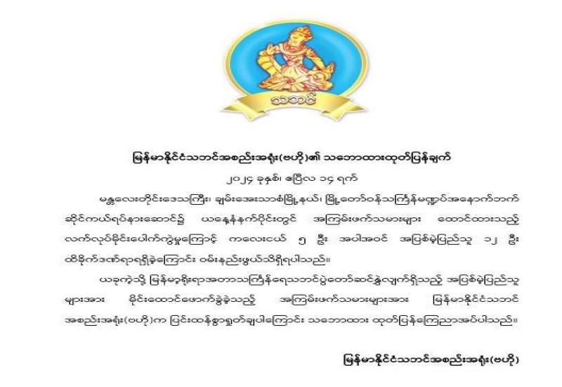မြန်မာနိုင်ငံစာရေးဆရာအသင်း၏ သဘောထားထုတ်ပြန်ချက်