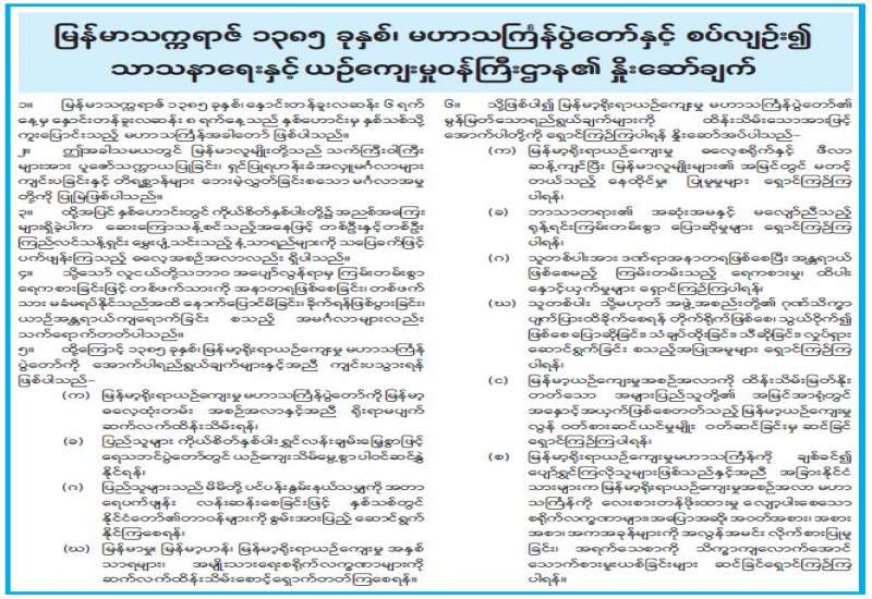 နိုင်ငံတော်စီမံအုပ်ချုပ်ရေးကောင်စီသည် ပြည်ထောင်စုသမ္မတမြန်မာနိုင်ငံတော် ဖွဲ့စည်းပုံအခြေခံဥပဒေပုဒ်မ ၄၁၉ အရ ဤဥပဒေ ကို ပြဋ္ဌာန်းလိုက်သည်။