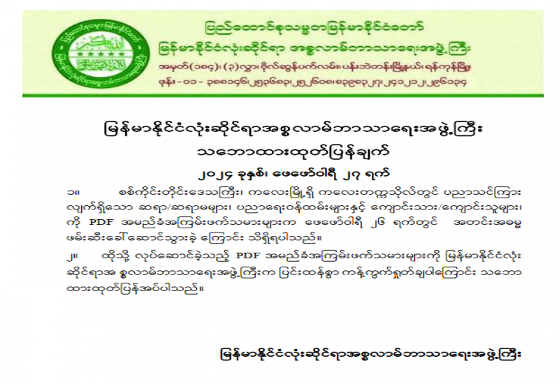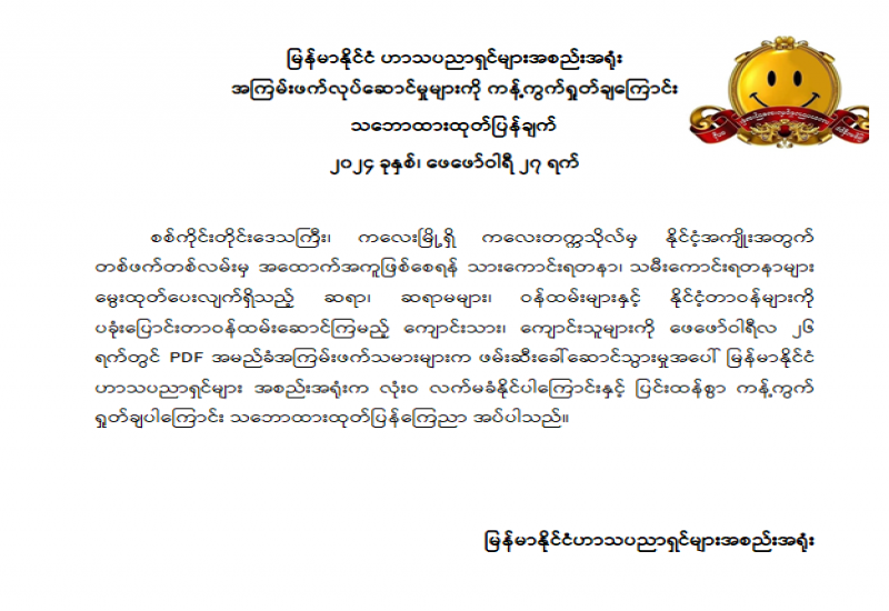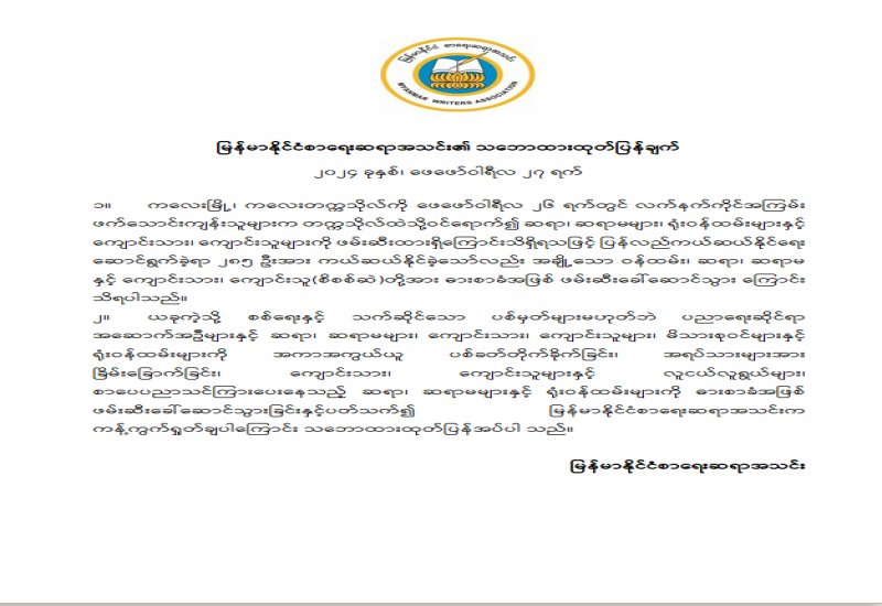 မြန်မာနိုင်ငံစာရေးဆရာအသင်း၏ သဘောထားထုတ်ပြန်ချက်