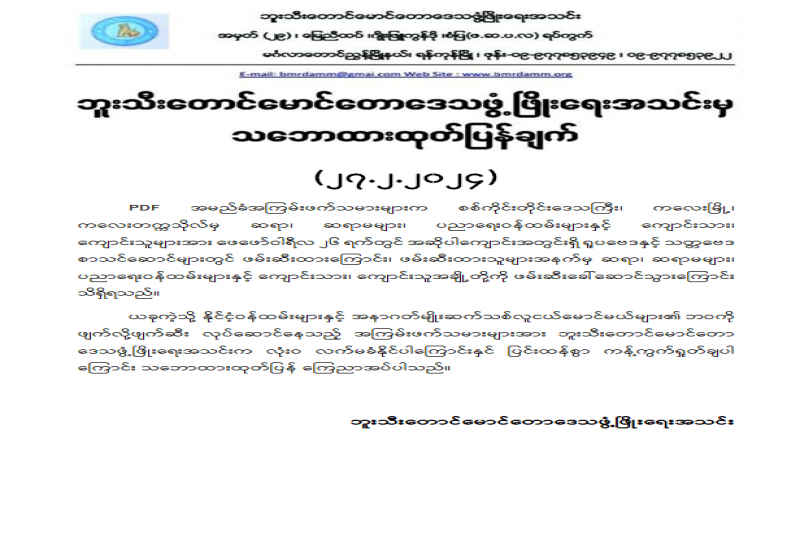 ဘူးသီးတောင်မောင်တောဒေသဖွံ့ဖြိုးရေးအသင်း သဘောထားထုတ်ပြန်ချက်
