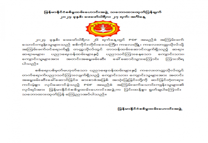 မြန်မာနိုင်ငံသဘင်အစည်းအရုံး (ဗဟို) ၏ သဘောထားထုတ်ပြန်ချက်