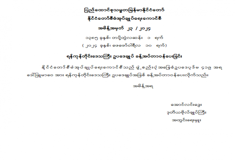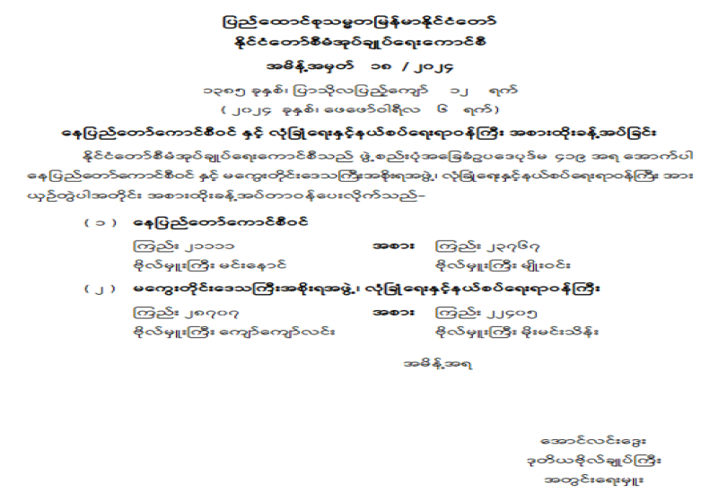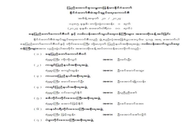 နေပြည်တော်ကောင်စီဝင်နှင့် လုံခြုံရေးနှင့် နယ်စပ်ရေးရာဝန်ကြီး အစားထိုးခန့်အပ်ခြင်း