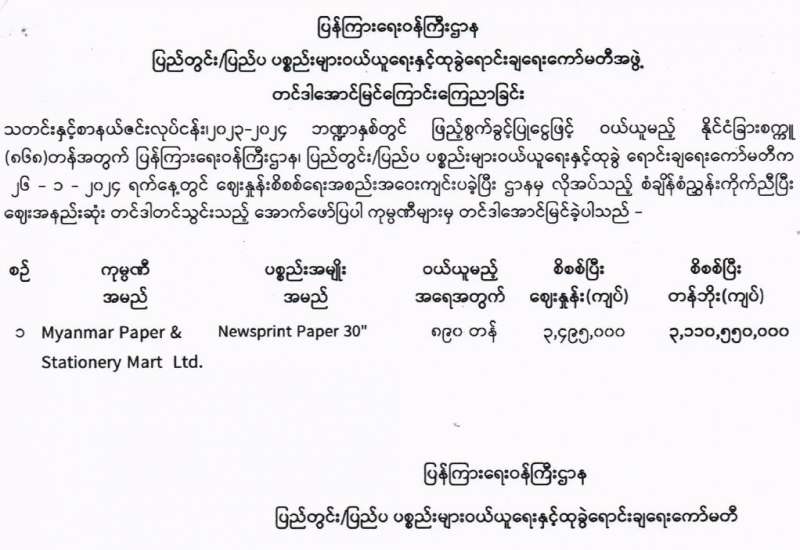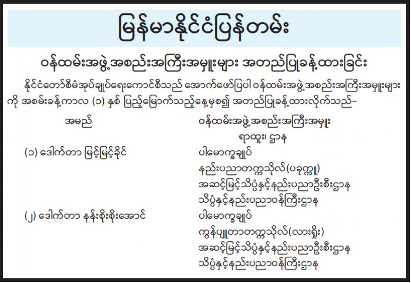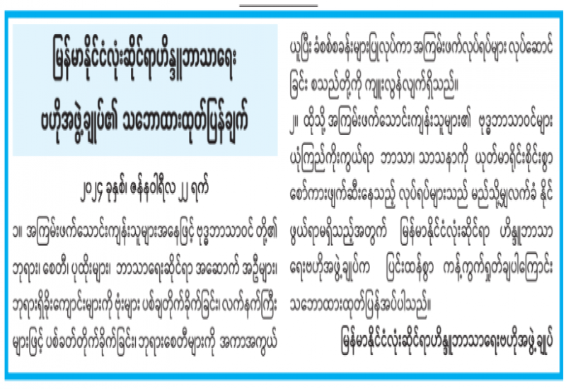 ပြဋ္ဌာန်းထားသောဥပဒေများ၏ မြန်မာဘာသာပြန်ဆိုချက် ထုတ်ပြန်ကြေညာ