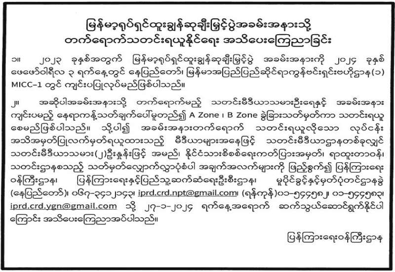 ၁။ ၂၀၂၃ ခုနှစ်အတွက် မြန်မာ့ရုပ်ရှင်ထူးချွန်ဆုချီးမြှင့်ပွဲ အခမ်းအနားကို ၂၀၂၄ ခုနှစ် ဖေဖော်ဝါရီလ ၃ ရက်နေ့တွင် နေပြည်တော်၊ မြန်မာအပြည်ပြည်ဆိုင်ရာကွန်ဗင်းရှင်းဗဟိုဌာန(၁) MICC-1 တွင် ကျင်းပပြုလုပ်မည်ဖြစ်ပါသည်။