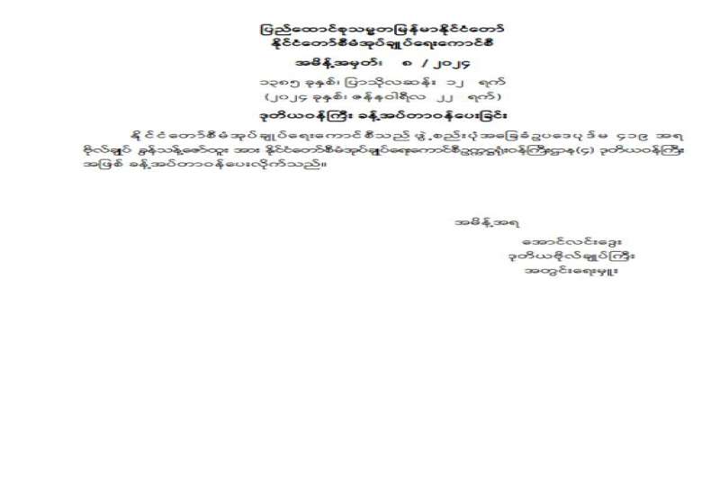 ပြည်ထောင်စုဝန်ကြီး ခန့်အပ်တာဝန်ပေးခြင်း