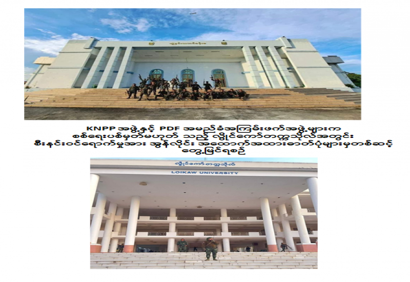 ၁။ KNPP အဖွဲ့နှင့် PDF အမည်ခံအကြမ်းဖက်အဖွဲ့များသည် နိုဝင်ဘာ ၁၃ ရက်နှင့် ၁၄ ရက်တို့တွင် စစ်ရေးနှင့်သက်ဆိုင်သောပစ်မှတ်မဟုတ်သည့် ကယားပြည်နယ်၊ လွိုင်ကော်တက္ကသိုလ်အား လက်နက်ကြီး၊ လက်နက်ငယ်များဖြင့် ရည်ရွယ်ချက်ရှိရှိ လာရောက်ပစ်ခတ်တိုက်ခိုက်ခဲ့ပြီး တက္ကသိုလ်တွင် လုံခြုံရေးတာဝန် ထမ်းဆောင်နေသည့် လုံခြုံရေးအဖွဲ့များကိုလည်း သာလွန်အင်အားများဖြင့် အလစ်အငိုက် ဝင်ရောက်တိုက်ခိုက်စီးနင်းခဲ့သည်။