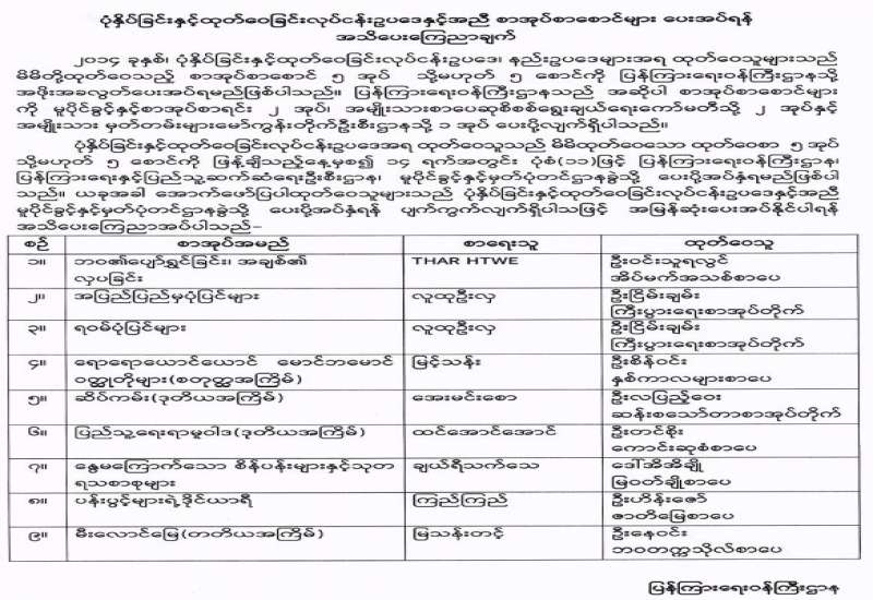 ပြန်ကြားရေးဝန်ကြီးဌာန အမျိုးသားစာပေဆုစိစစ်ရွေးချယ်ရေးကော်မတီသည် ပြည်ထောင်စုသမ္မတမြန်မာနိုင်ငံတော်တွင် မြန်မာစာပေအကျိုးကို ထူးချွန်ပြောင်မြောက်စွာ တစ်သက်တာလုံး အားထုတ်ရေးသားပြုစုခဲ့သော ဆောင်ရွက်ချက်များကို နိုင်ငံတော်က အသိအမှတ်ပြုသောအားဖြင့် စာပေပညာရှင် ဆရာကြီး ဒေါက်တာသန်းဦး(ပြည်စိုးမင်း)၊ စာရေးဆရာမကြီး ဒေါ်ခင်သန်းဝင်း (ကြူကြူသင်း)၊ စာပေပညာရှင် ဆရာကြီးဦးချစ်စံ(ချစ်စံဝင်း)နှင့် စာပေပညာရှင်ဆရာကြီး ဒေါက်တာထွန်းတင့်(ဒေါက်တာထွန်းတင့်- မြန်မာစာ)တို့အား ၂၀၂၂ ခုနှစ်အတွက် အမျိုးသားစာပေ တစ်သက်တာဆုရှင်များအဖြစ် ရွေးချယ်ချီးမြှင့်လိုက်ကြောင်း ကြေညာသည်။