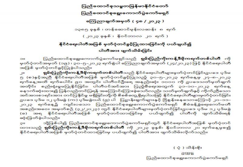 ခေတ်သစ်ပြည်သူ့ပါတီ (Modern People Party) ကို နိုင်ငံရေးပါတီအဖြစ် မှတ်ပုံတင်ခွင့်ပြုခြင်း