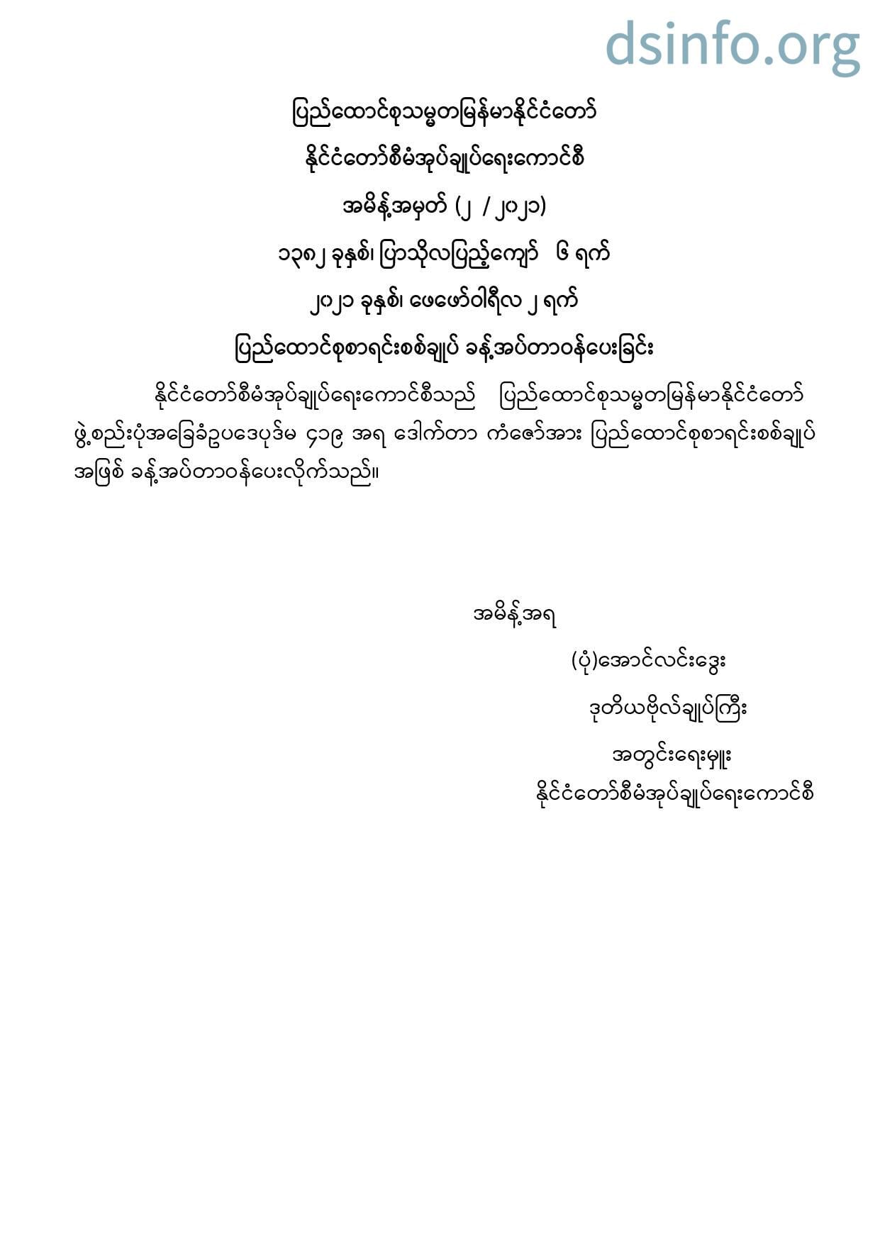 ပြည်ထောင်စုစာရင်းစစ်ချုပ် ခန့်အပ်တာဝန်ပေးခြင်း