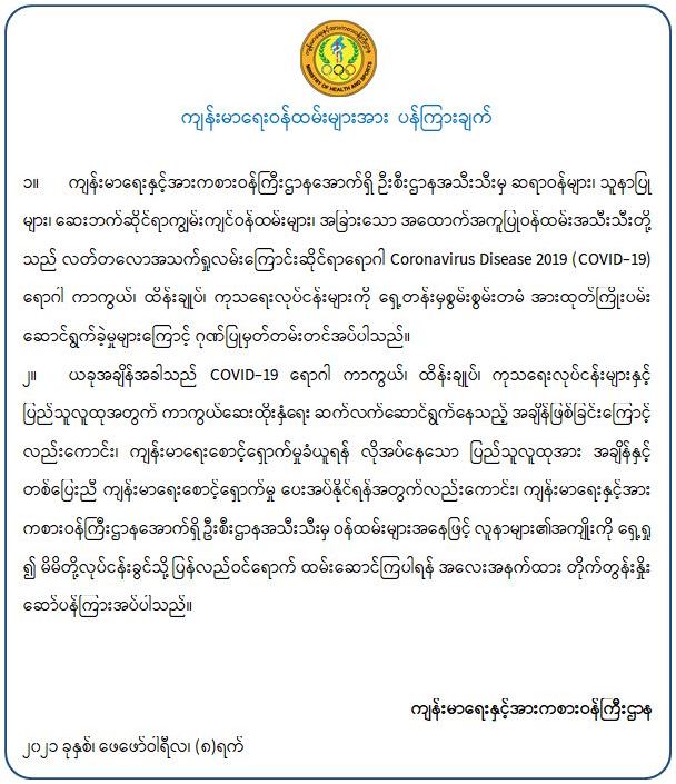 ကျန်းမာရေးဝန်ထမ်းများအား ပန်ကြားချက်