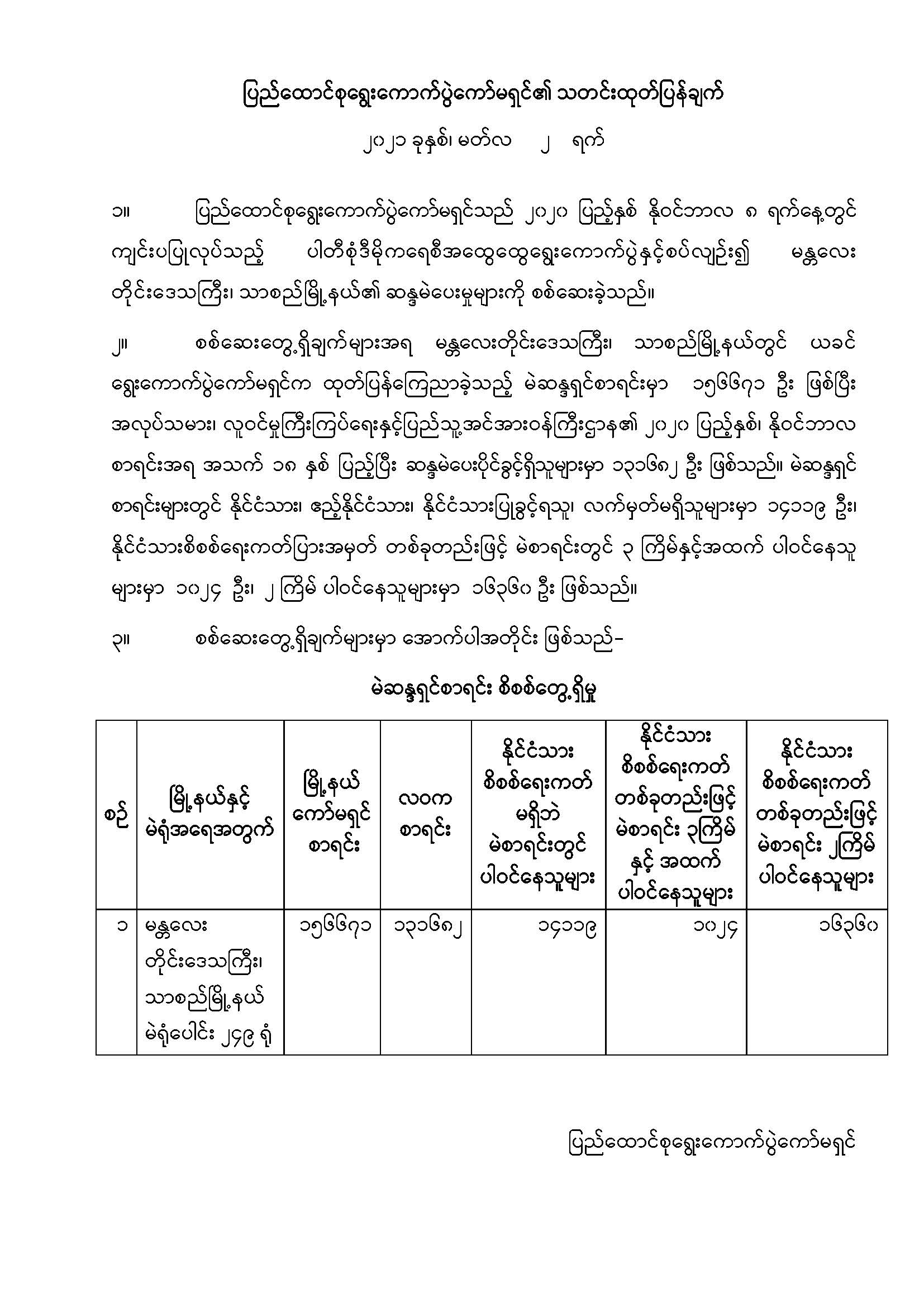 ပြည်ထောင်စုရွေးကောက်ပွဲကော်မရှင်၏ သတင်းထုတ်ပြန်ချက်