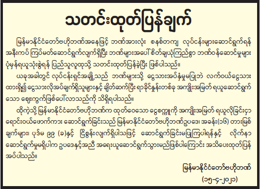 ဝန်ကြီးဌာန ကြေညာချက်များ