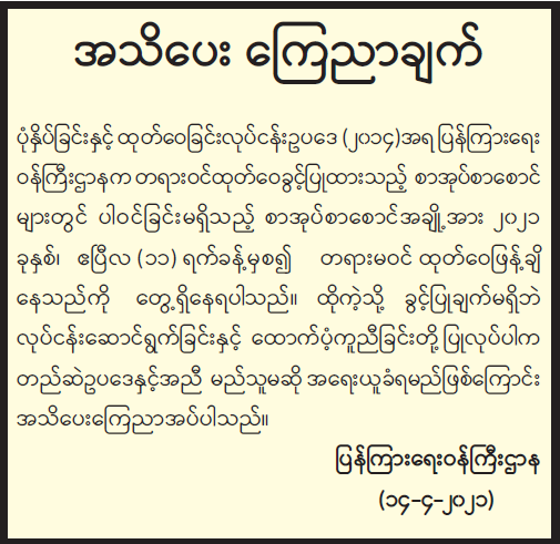 ဝန်ကြီးဌာန ကြေညာချက်များ