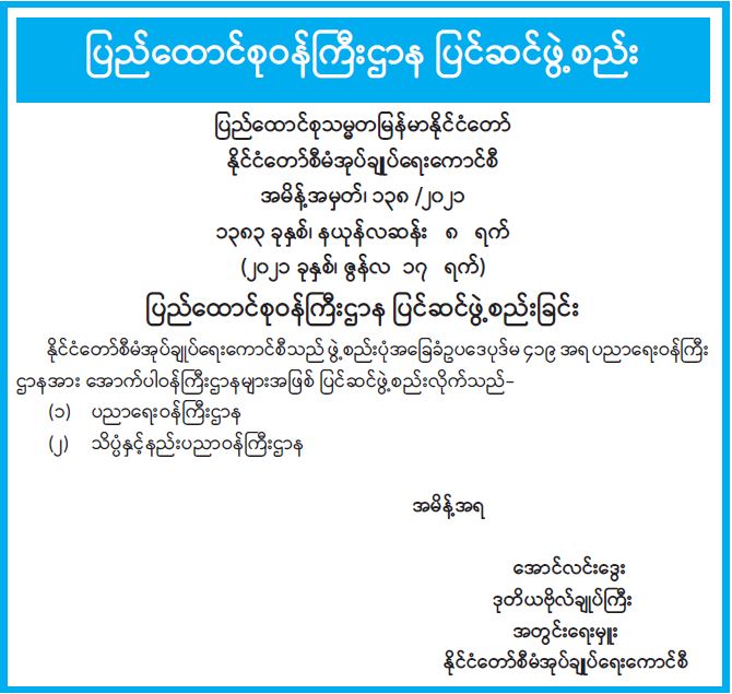 ပြည်ထောင်စုဝန်ကြီးဌာန ပြင်ဆင်ဖွဲ့စည်း