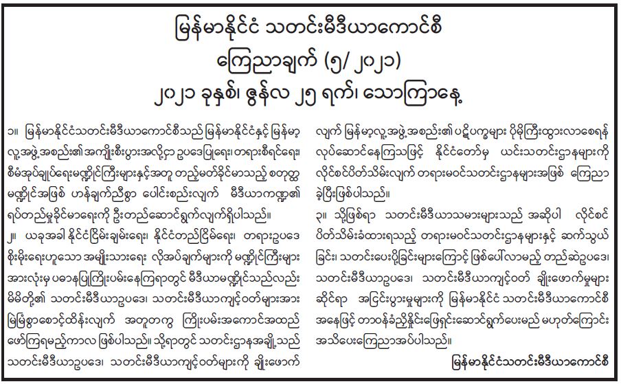 မြန်မာနိုင်ငံသတင်းမီဒီယာကောင်စီ ကြေညာချက် (၅/၂၀၂၁)