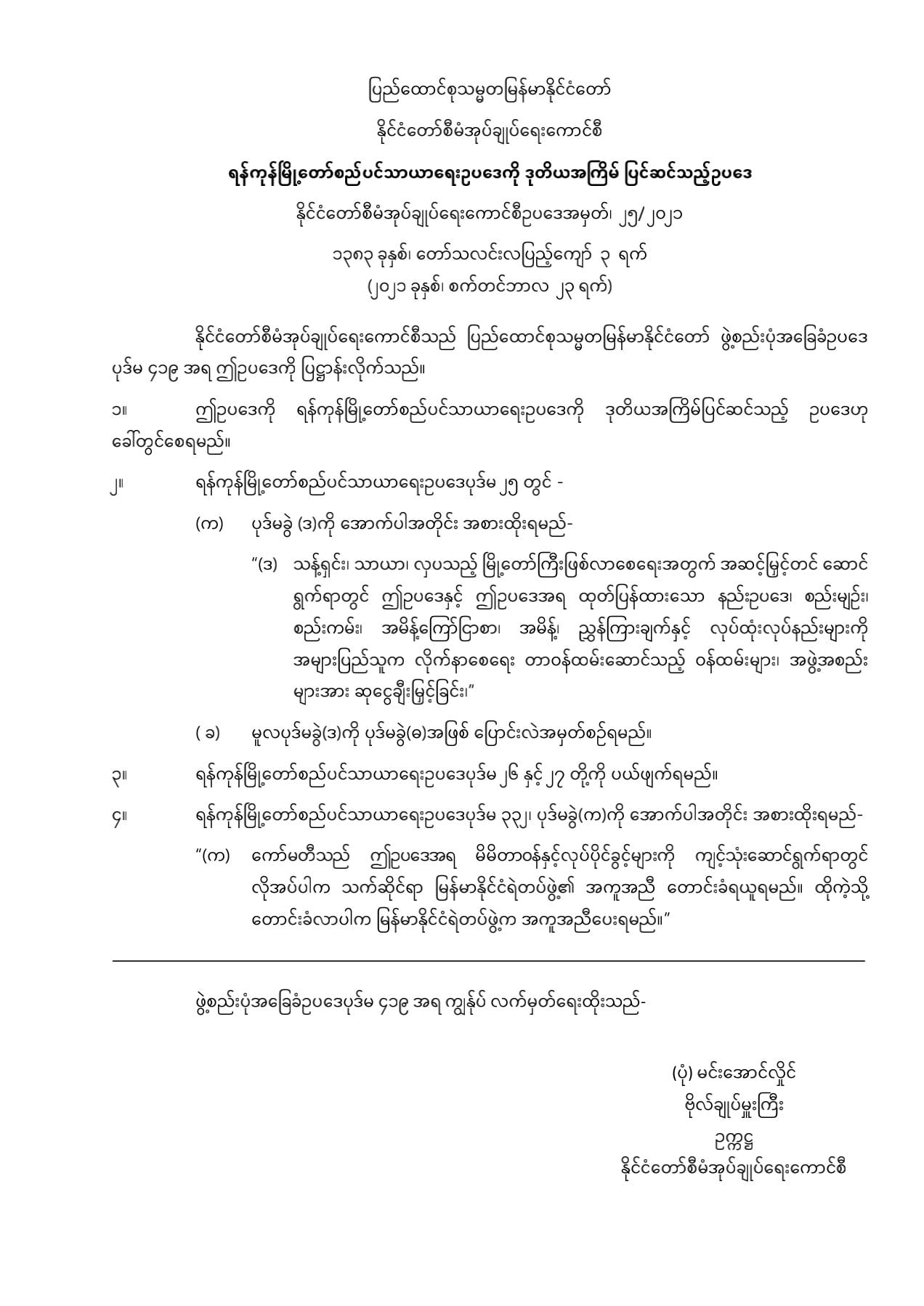 ရန်ကုန်မြို့တော် စည်ပင်သာယာရေးဥပဒေကို ဒုတိယအကြိမ် ပြင်ဆင်သည့်ဥပဒေ