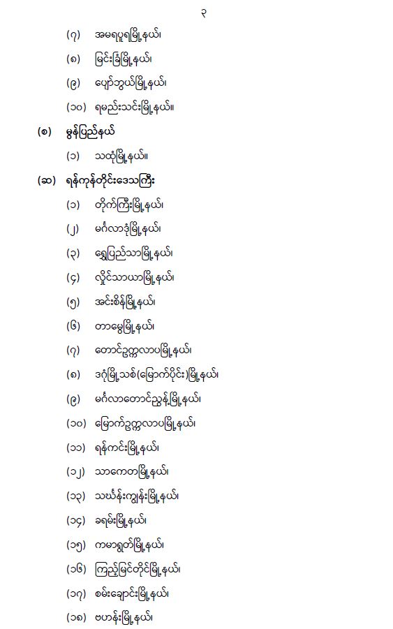 တိုင်းဒေသကြီး/ပြည်နယ်များအတွင်းရှိ ဖော်ပြပါ မြို့နယ် ၄၄ မြို့နယ်အား Stay at home အစီအစဉ်တွင် အကျုံးဝင်ခြင်းမှ ပယ်ဖျက် 10/27/2021