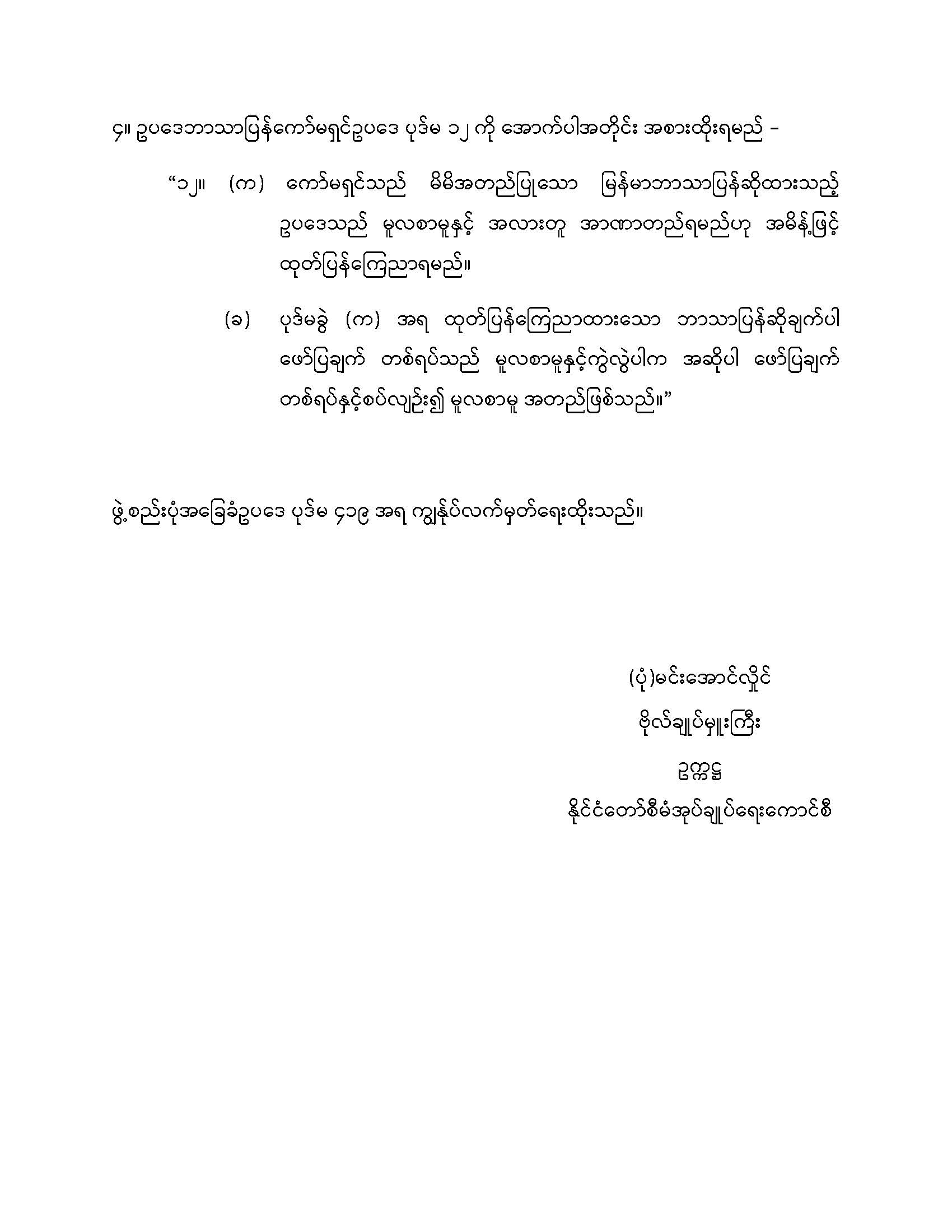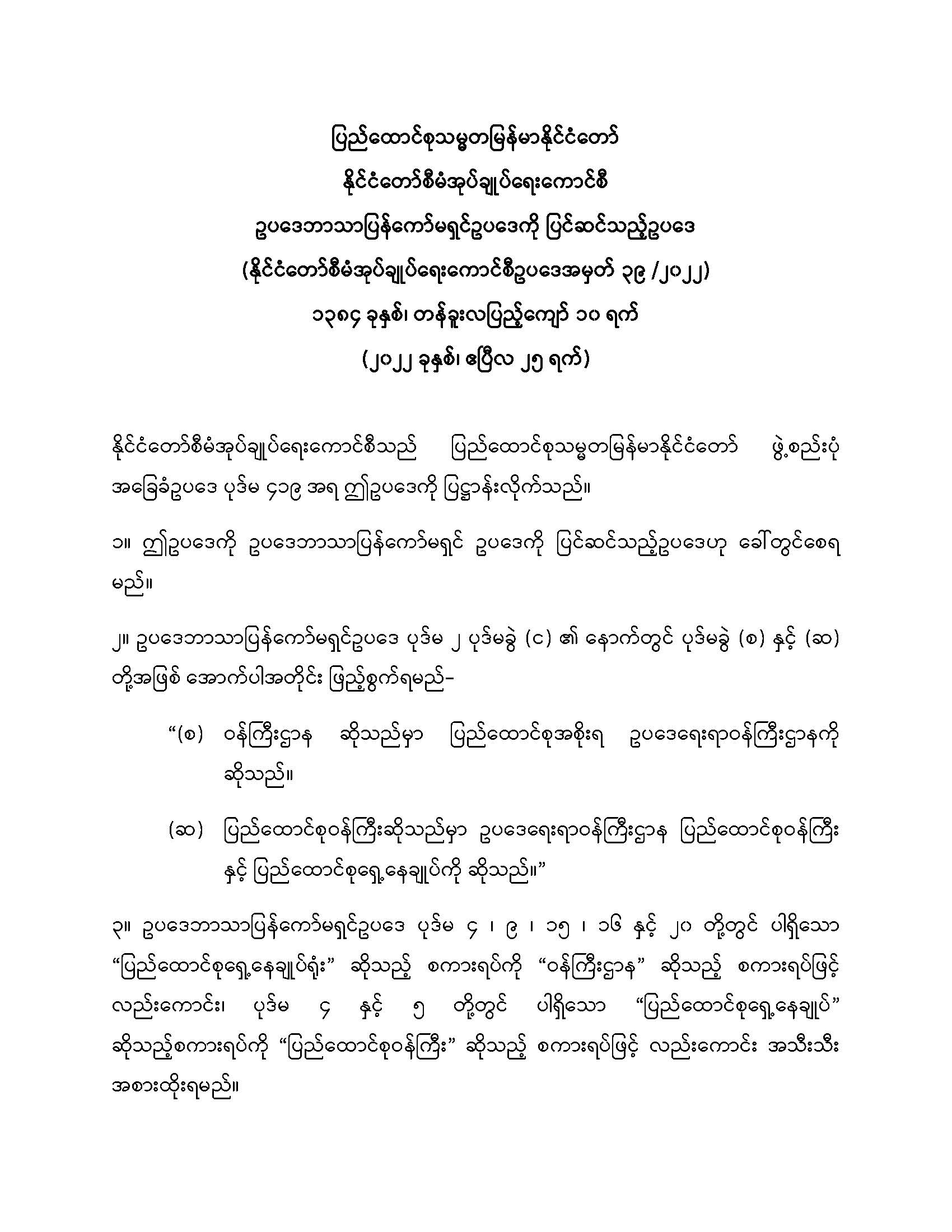 ဥပဒေဘာသာပြန်ကော်မရှင်ဥပဒေကို ပြင်ဆင်သည့်ဥပဒေ ပြဋ္ဌာန်း
