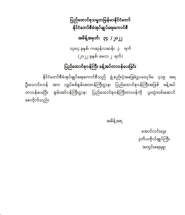 ဝန်ကြီးဌာန ကြေညာချက်များ