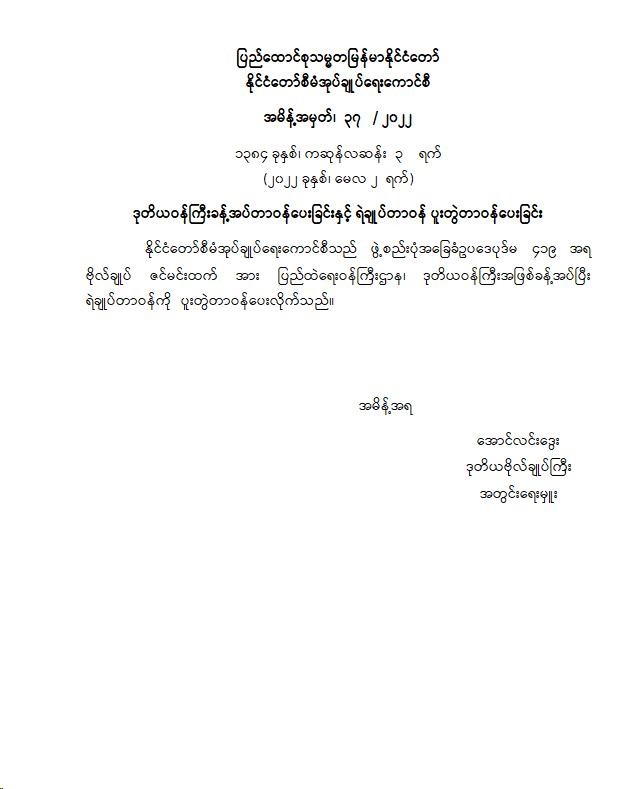 ဒုတိယဝန်ကြီးခန့်အပ်ပေးခြင်းနှင့် ရဲချုပ်တာဝန် ပူးတွဲတာဝန်ပေးခြင်း