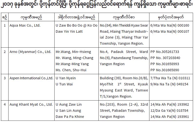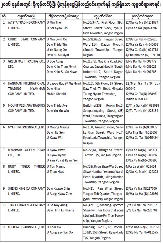 ပို့ကုန်ရငွေပြန်လည်ဝင်ရောက်ရန် ကျန်ရှိကုမ္ပဏီ(၁၅၈)ခုအား အရေးယူဆောင်ရွက်လျက်ရှိပြီး ဒါရိုက်တာအဖွဲ့ဝင်များအား အမည်မည်းစာရင်းထည့်သွင်းကြောင်း ကြေညာ