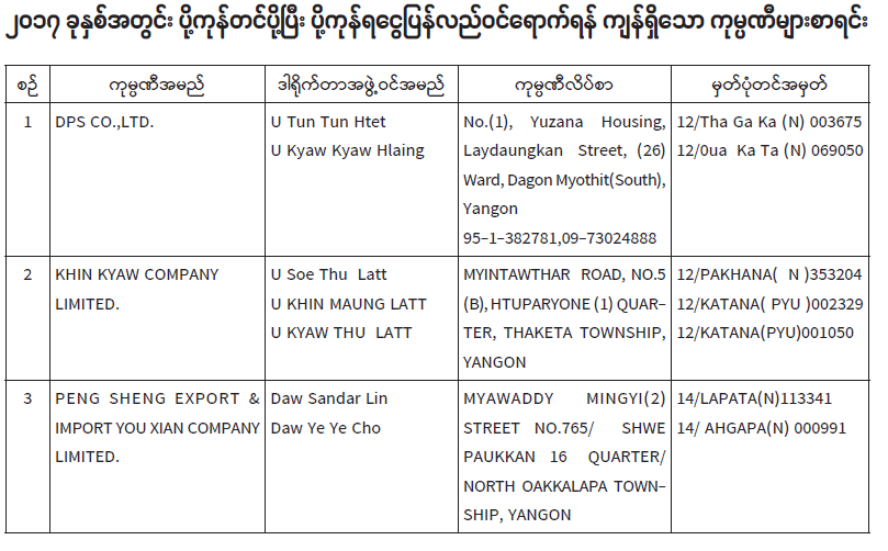 ပို့ကုန်ရငွေပြန်လည်ဝင်ရောက်ရန် ကျန်ရှိသည့် ကုမ္ပဏီ (၁၉)ခုအား အရေးယူဆောင်ရွက်လျက်ရှိပြီး ဒါရိုက်တာအဖွဲ့ဝင်များအား အမည်မည်းစာရင်း ထည့်သွင်းကြောင်းကြေညာ