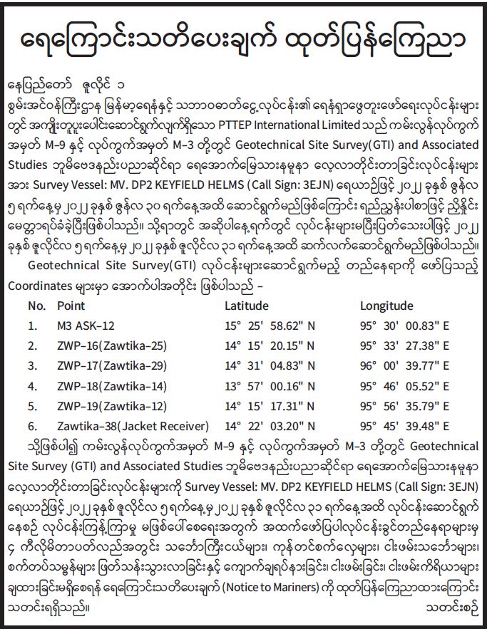 ရေကြောင်းသတိပေးချက် ထုတ်ပြန်ကြေညာ