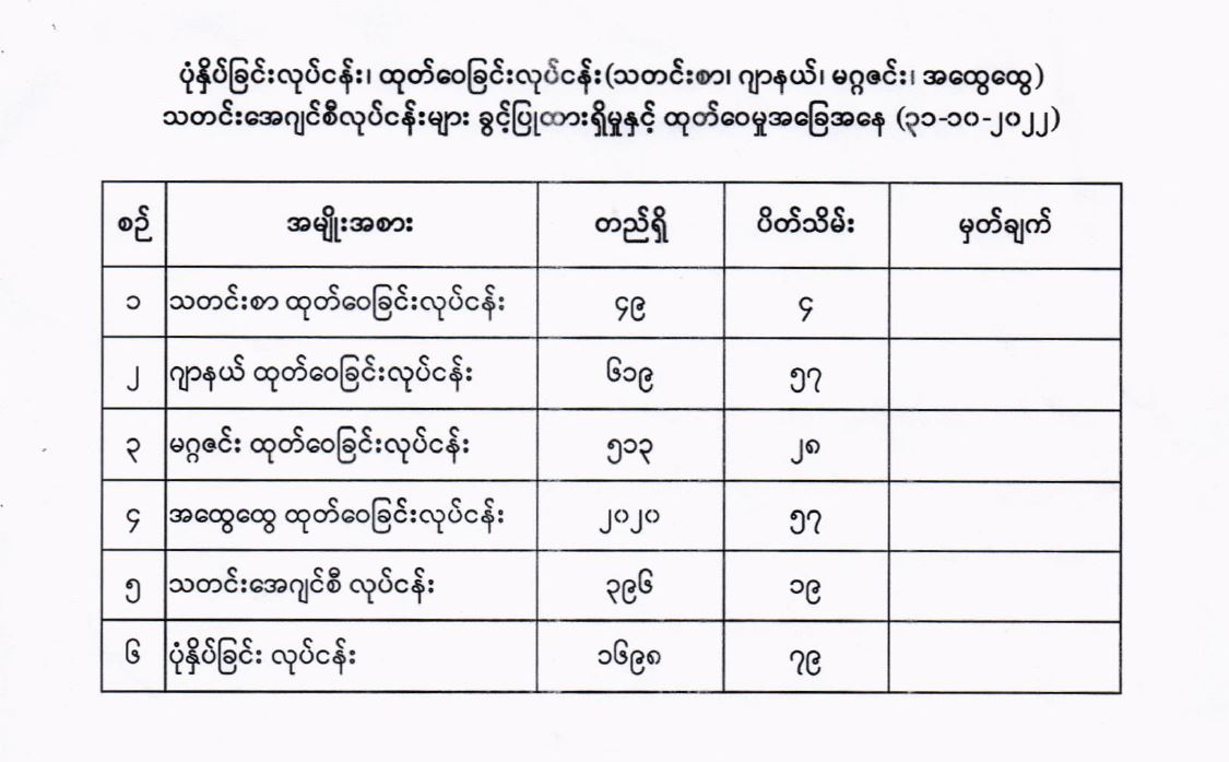 ပုံနှိပ်ခြင်းလုပ်ငန်း၊ ထုတ်ဝေခြင်းလုပ်ငန်း(သတင်းစာ၊ ဂျာနယ်၊ မဂ္ဂဇင်း၊ အထွေထွေ) သတင်းအေဂျင်စီလုပ်ငန်းများ ခွင့်ပြုထားရှိမှုနှင့် ထုတ်ဝေမှုအခြေအနေ (၃၁-၁၀-၂၀၂၂)