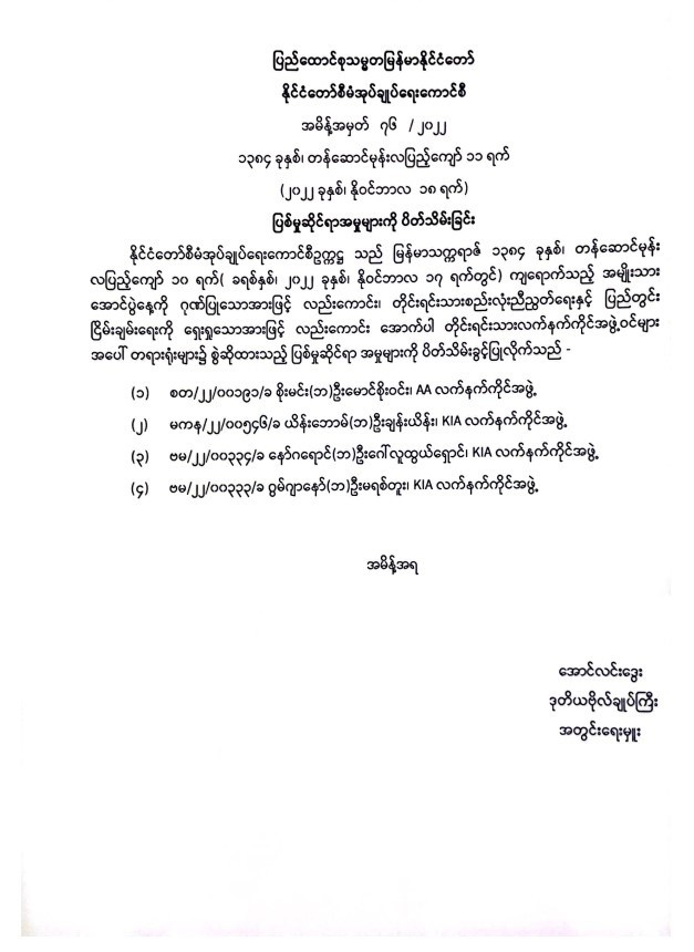 ပြည်ထောင်စုသမ္မတမြန်မာနိုင်ငံတော် နိုင်ငံတော်စီမံအုပ်ချုပ်ရေးကောင်စီ အမိန့်အမှတ် ၇၆ / ၂၀၂၂ ၁၃၈၄ ခုနှစ်၊ တန်ဆောင်မုန်းလပြည့်ကျော် ၁၁ ရက် ( ၂၀၂၂ ခုနှစ် ၊ နိုဝင်ဘာလ ၁၈ ရက် ) ပြစ်မှုဆိုင်ရာအမှုများကို ပိတ်သိမ်းခြင်း