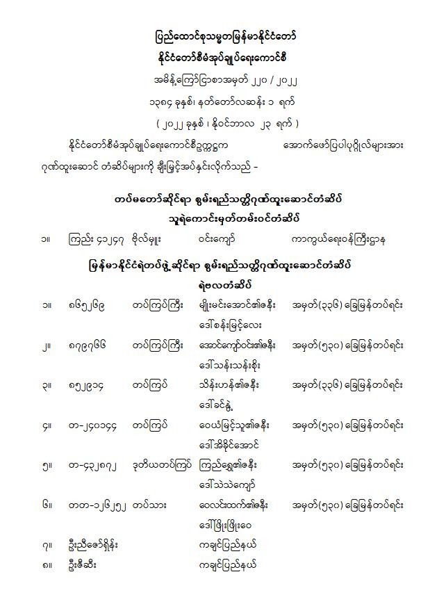ပြည်ထောင်စုသမ္မတမြန်မာနိုင်ငံတော် နိုင်ငံတော်စီမံအုပ်ချုပ်ရေးကောင်စီ အမိန့်ကြော်ငြာစာအမှတ် ၂၂၀ /၂၀၂၂