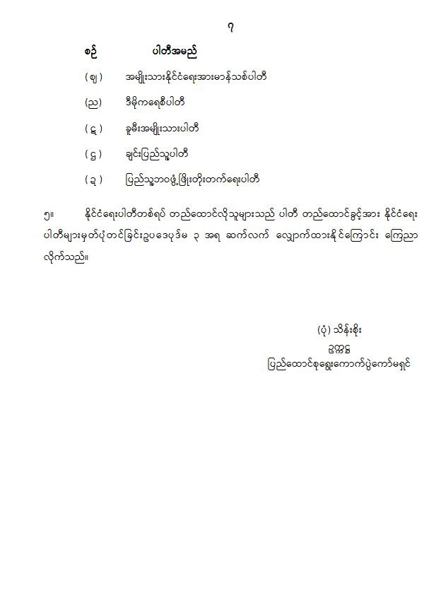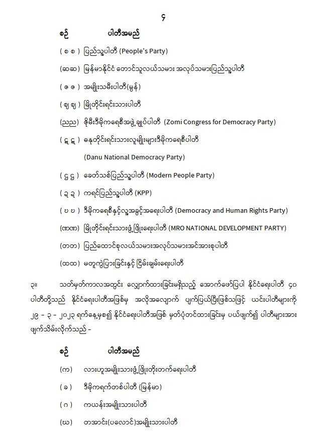 နိုင်ငံရေးပါတီများတည်ထောင်ခွင့်၊ မှတ်ပုံတင်ခွင့်လျှောက်ထားခြင်းနှင့် ပါတီဖျက်သိမ်းခြင်းတို့နှင့်စပ်လျဉ်း၍ ကြေညာခြင်း 03/28/2023