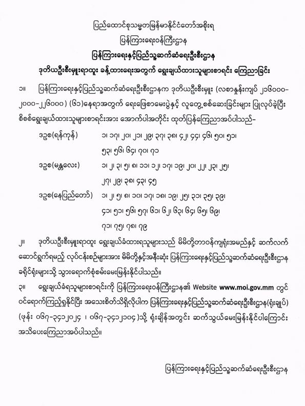 ပြန်ကြားရေးနှင့်ပြည်သူ့ဆက်ဆံရေးဦးစီးဌာန ဒုတိယဦးစီးမှူးရာထူး ခန့်ထားရေးအတွက် ရွေးချယ်ထားသူများစာရင်း ကြေညာခြင်း 07/17/2023