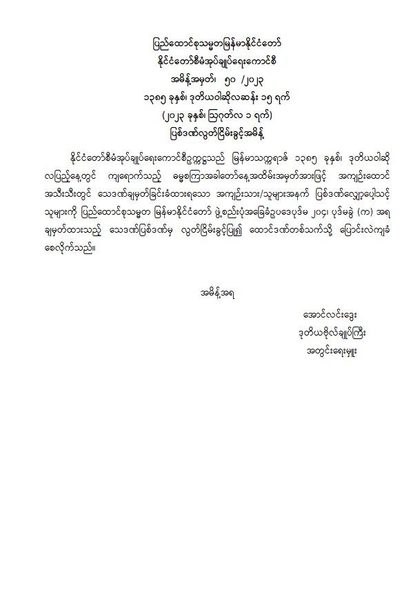 အမိန့်အမှတ်၊   ၅၀  /၂၀၂၃