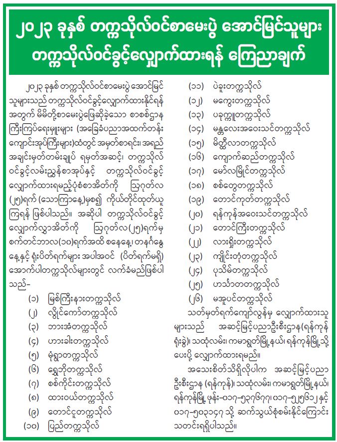 ၂၀၂၃ ခုနှစ် တက္ကသိုလ်ဝင်စာမေးပွဲ အောင်မြင်သူများ တက္ကသိုလ်ဝင်ခွင့်လျှောက်ထားရန် ကြေညာချက်